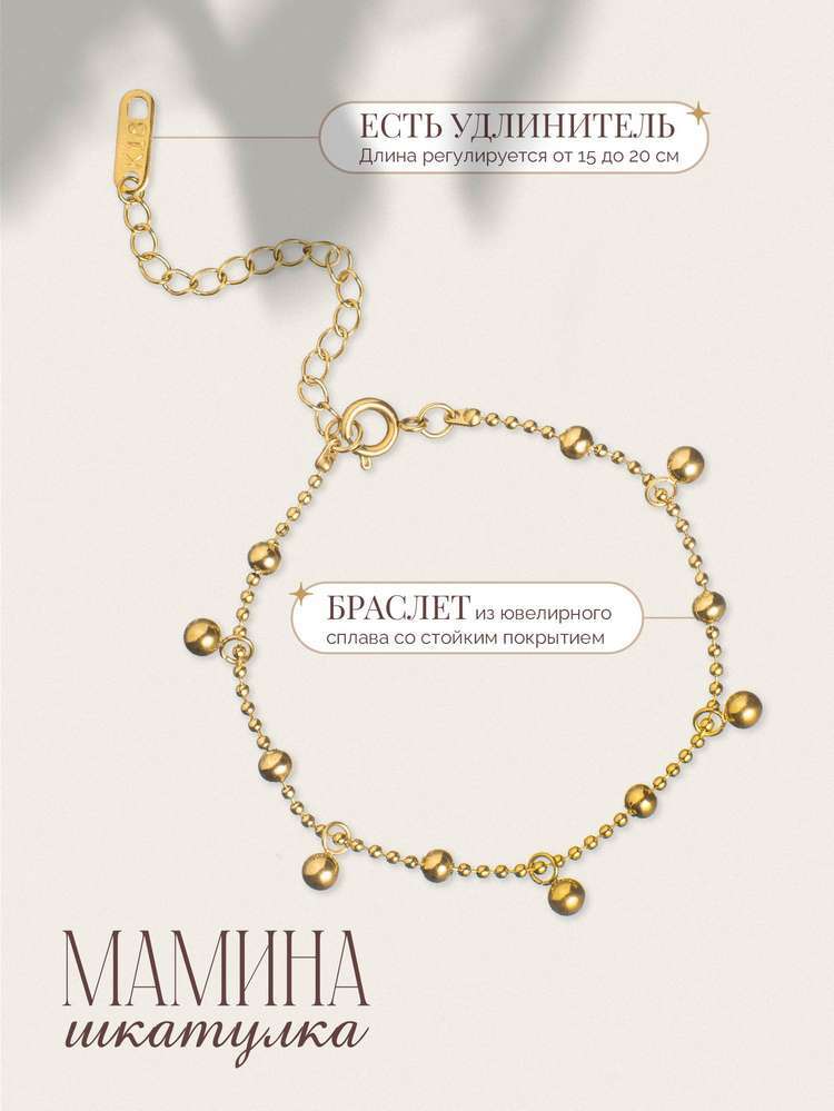 Браслет «Сальма» — это элегантное украшение, которое воплощает в себе роскошь и изысканность. Его золотистый блеск подчёркивает вашу утончённость и неповторимую элегантность, становясь ярким акцентом в вашем образе. С этим уникальным браслетом вы будете неотразимы, привлекая восхищённые взгляды и подчёркивая свой стиль. «Мамина шкатулка» — бренд, воплощающий оригинальные идеи в мире украшений. В коллекции представлены изделия, созданные талантливыми дизайнерами со всего мира. Забота о клиенте — наш приоритет, поэтому мы предлагаем расширенную гарантию, услуги по ремонту и замене украшений. Ассортимент постоянно обновляется, чтобы вдохновлять и радовать тех, кто ищет стильные и необычные аксессуары. Винтажные, минималистичные и богемные модели приходят в элегантной упаковке, что делает их прекрасным выбором как для себя, так и для подарка.