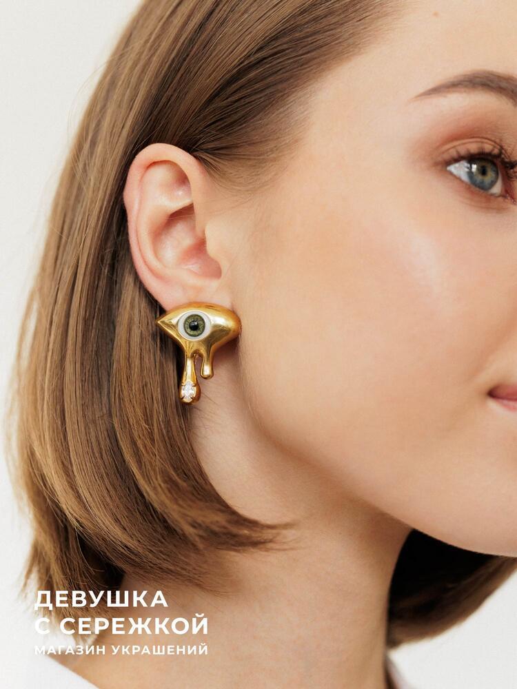 Сережки «Золотая слеза» — выразительный акцент с магнетическим притяжением. Центр композиции — стеклянные глаза ручной работы, покрытые эпоксидной смолой, дополненные сиянием фианитов. Золотистый оттенок подчёркивает глубину и контраст, превращая серьги в настоящее арт-украшение. Выполненные из латуни, они сохраняют форму и блеск, оставаясь заметной деталью, способной задать тон всему образу. «Девушка с сережкой» — бренд авторских украшений необычных форм. Большинство изделий создаются на собственном производстве, где особое внимание уделяется качеству. В продуктовой линейке также представлена бижутерия талантливых дизайнеров из разных стран. Компания заботится о клиентах, предоставляя дополнительный гарантийный срок, а также услуги по ремонту и замене украшений. Команда бренда «Девушка с сережкой» регулярно расширяет ассортимент, стремясь порадовать и вдохновить постоянных клиентов. Украшения, вдохновленные флорой и фауной, выполненные в винтажном, минималистичном и богемном стилях, доставляются в красивой упаковке — это отличный выбор как для себя, так и в подарок.